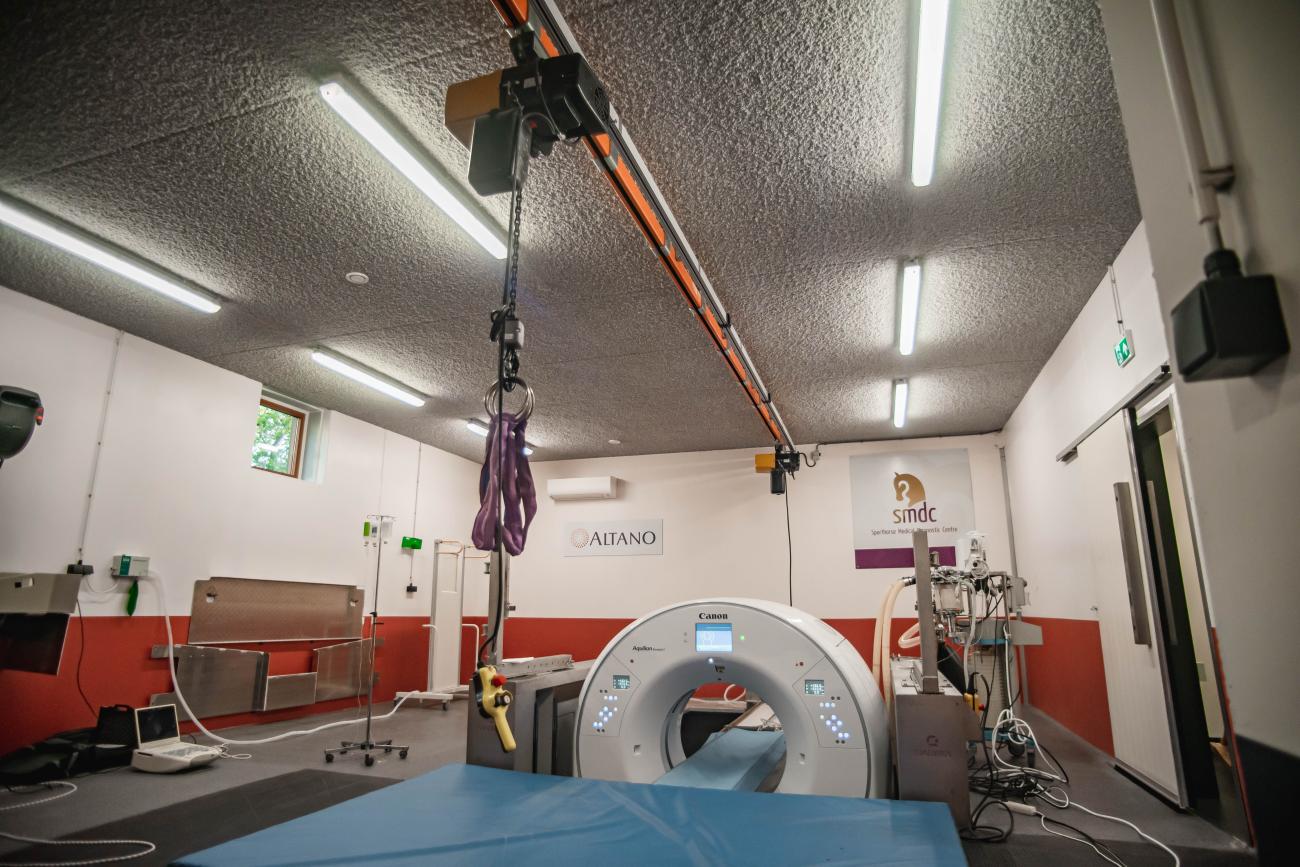 The animal is placed under general anaesthesia in one of the two waiting stalls, after which it is hooked onto the hoist and carried carefully to the CT scanner where the staff repositions the horse into place, before running the scan. After the procedure is complete, the horse is taken back o the stall where it is slowly brought back to consciousness.