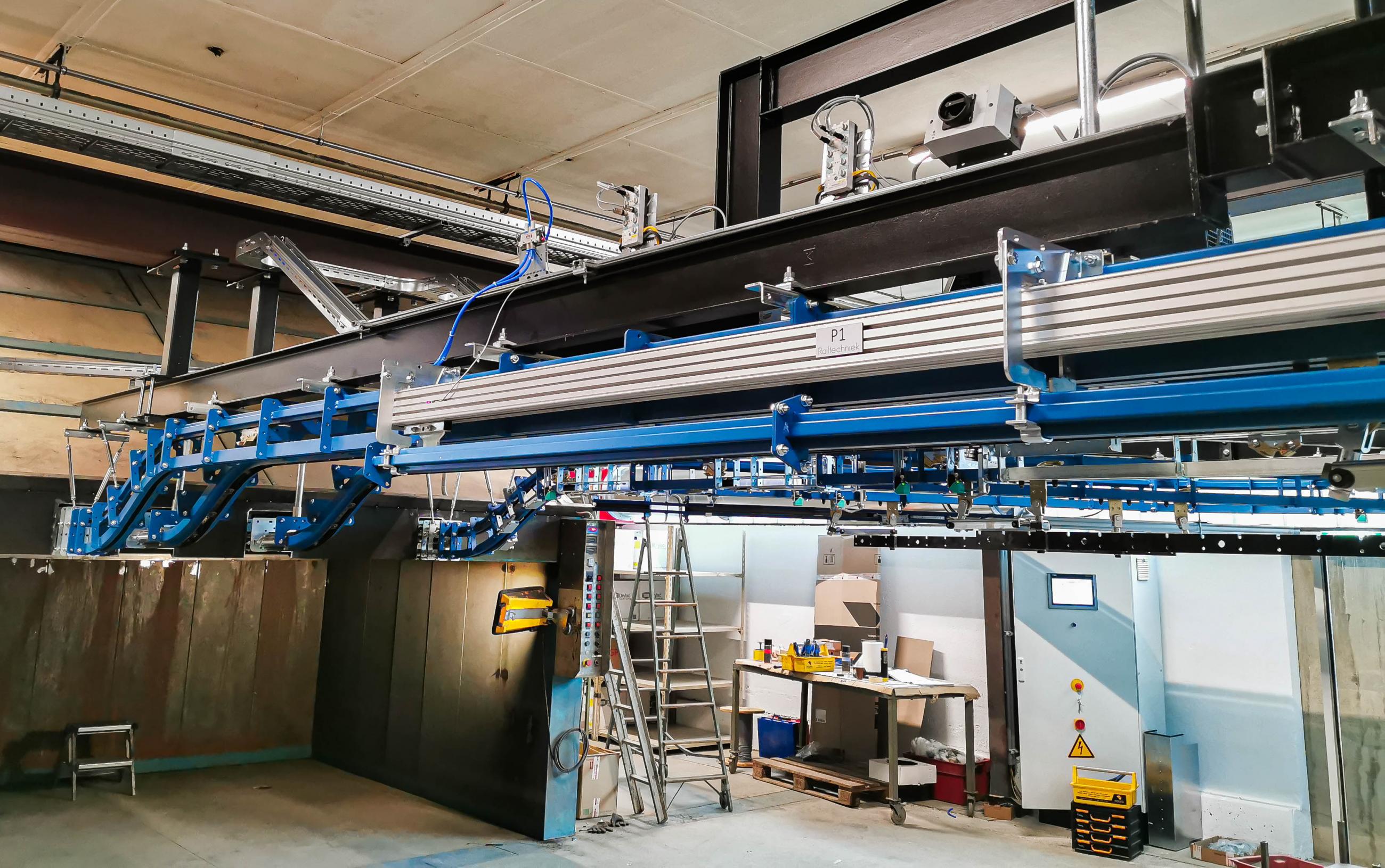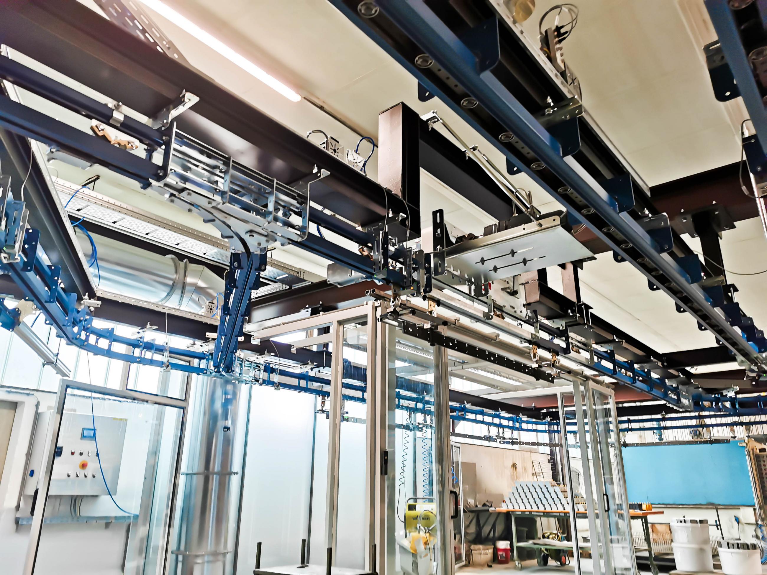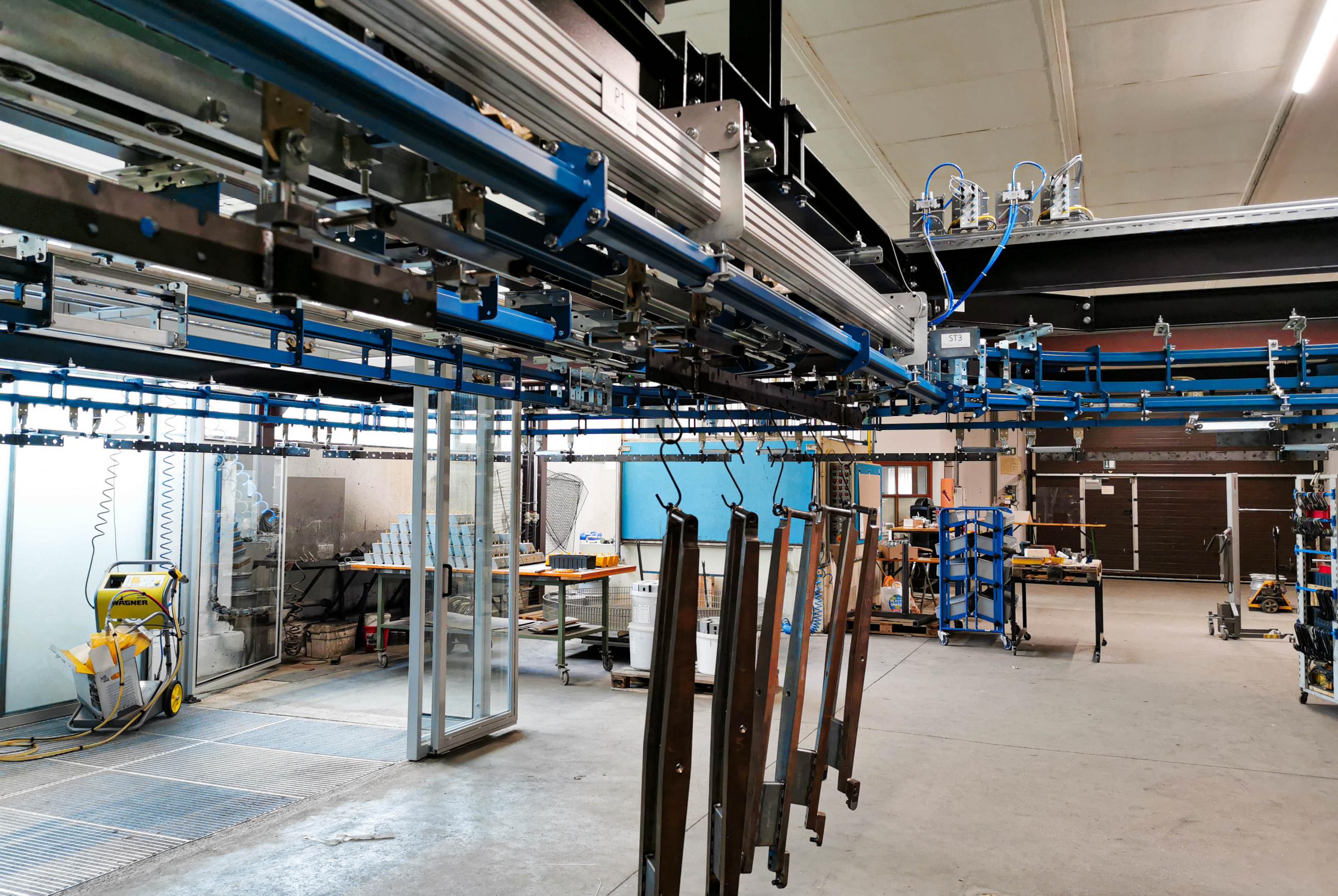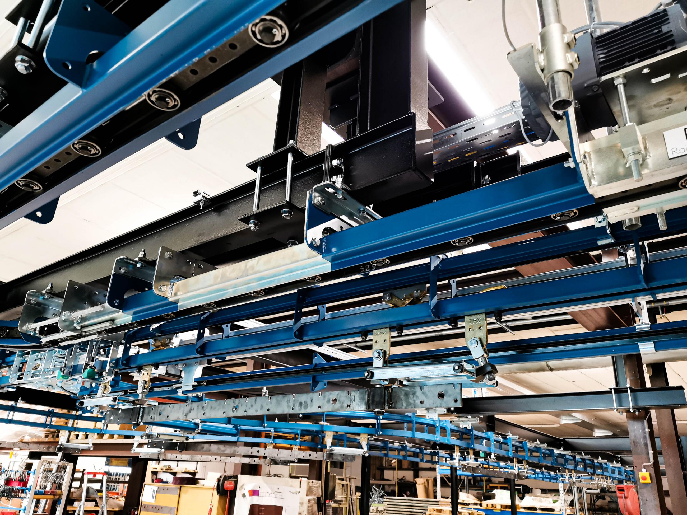 Vor kurzem haben wir einen schönen blauen K8-2 Power & Free Förderanlage mit einem D8 Kettentransfer fertiggestellt. Dieses einfache System befördert Produkte durch eine Pulverbeschichtungskabine und anschließend durch einen Einbrennofen, um abschließend in einem Puffer gelagert zu werden. Das 45 m Hängeförderanlage kann Produkte mit einem Gewicht von bis zu 100 kg pro Wagen befördern - perfekt für die von Fa. Enzi hergestellten Gartenmöbel!